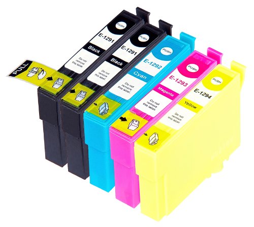 Ⓑ Pack 5 Epson T1295 Cartouches Compatibles. 2 noir, 1 cyan, 1 magenta, 1 jaune compatible avec Epson Stylus Office B42WD, BX305F, BX305FW, BX305FW Plus, BX320FW, BX525WD, BX535WD, BX625FWD, BX630FW, BX635FWD, BX925FWD, BX935FWD, Stylus SX230, Stylus SX235W, Stylus SX420W, Stylus SX425W, Stylus SX430W, Stylus SX435W, Stylus SX438W, Stylus SX440W, Stylus SX445W, Stylus SX525WD, Stylus SX535WD, Stylus SX620FW, WorkForce WF-3010DW, WF-3520DWF, WF-3530DTWF, WF-3540DTWF, WF-7015, WF-7515, WF-7525.Cartouches Compatibles. JET D ENCRE imprimantes. T1291 , T1292 , T1293 , T1294 © Encre Choix